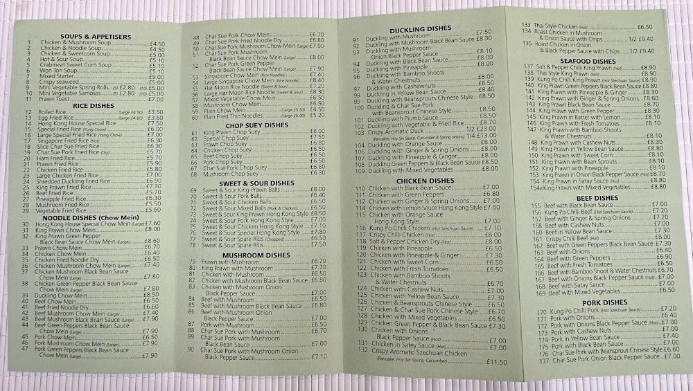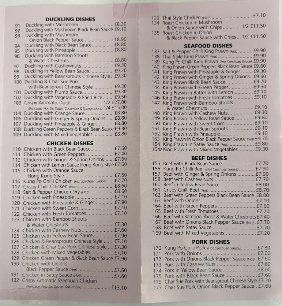 The menu at Hong Kong House Takeaway is impressively extensive, featuring over 240 dishes spread across various categories. From savory duckling options to a delightful array of seafood, there’s something for every palate. Vegetarian options abound, including stir-fried mixed vegetables and curried dishes that showcase the vibrant flavors of Chinese cuisine. Favorites like sweet and sour king prawns or the renowned chilli beef continue to draw crowds; just try not to drool as you look through the diverse offerings.